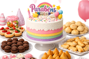 1,5 kg Bolo | 80 Salgadinhos | 60 Docinhos