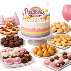 1,5 kg Bolo | 80 Salgadinhos | 60 Docinhos